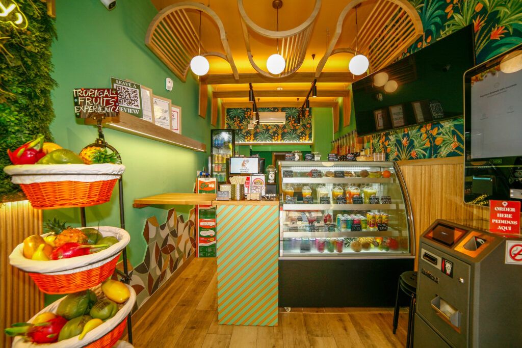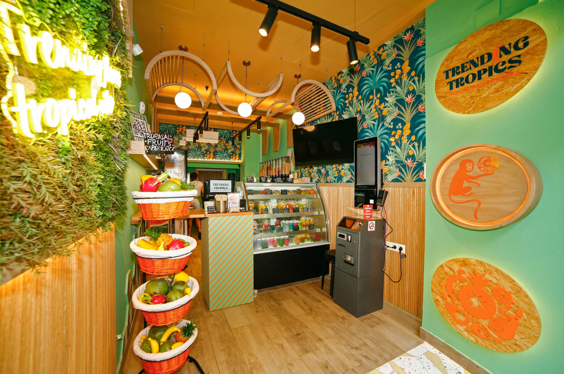 🌿 Madera natural, luz cálida, vegetación en paramentos verticales, revestimientos tropicales y texturas que invitan a quedarse… Cada rincón de Trending Tropics está pensado para conectar con la esencia del producto: smoothies ecológicos con alma brasileña.
